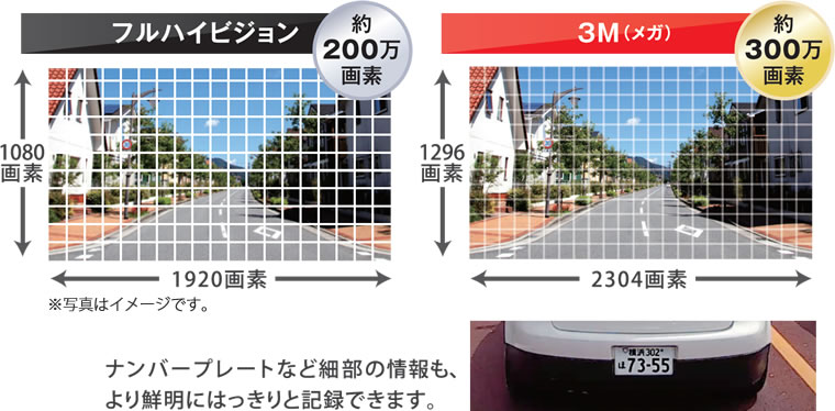 【特徴】・フルハイビジョンを超える3M(メガ)(2304×1296)録画デジタル放送を超える3M(メガ)の高解像度録画を実現しました。