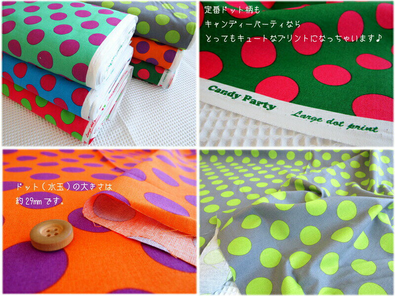 キャンディーパーティーシリーズのプリント生地【Large dot print】ラージドットプリントきれいな色の組み合わせ&大きめドットがかわいいプリント生地です。CandyParty 2012 Collection