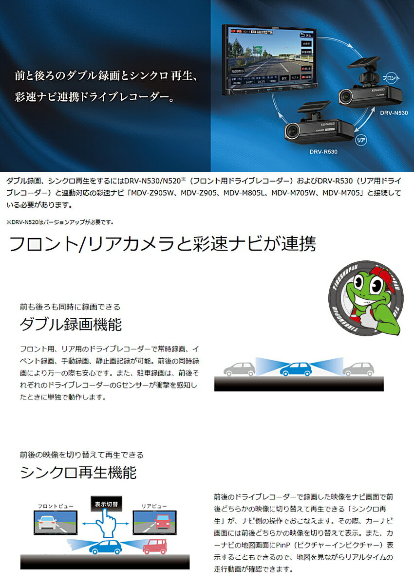 ドライブレコーダー KENWOOD ナビ連携型 フロント用 ケンウッド DRV-N530 ドラレコ 高画質 microSDHCカード:8GB付属! 常時録画 手動録画 イベント記録 広角レンズ HDR 駐車時も安心!