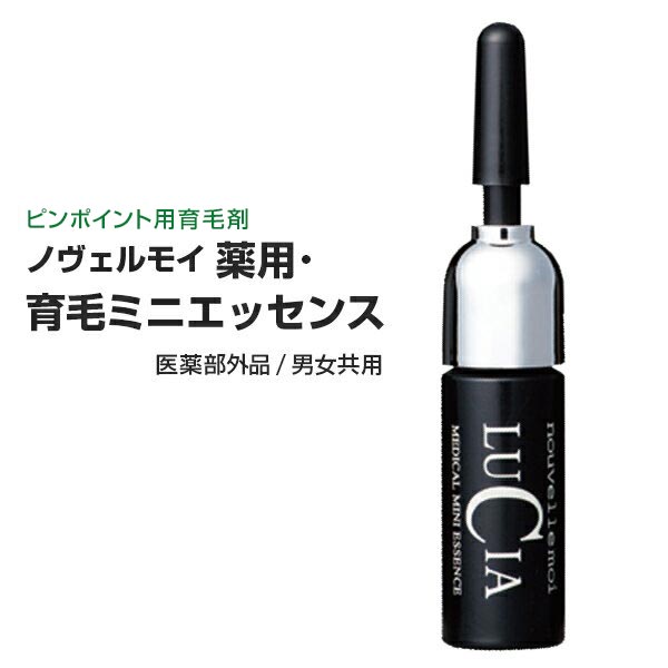 商品名ノヴェルモイ薬用・育毛ミニエッセンス 内容量1本5ml [約1ヶ月分] 用途男女共用/女性用 男性用 育毛剤 効果・効能育毛、抜け毛予防、養毛、生毛促進 医薬部外品承認番号【21300DZZ02289000】 薬用育毛エッセンスの成分グリチルリチン酸2K※、ピリドキシン塩酸塩※、ニンジンエキス※、天然ビタミンE、ヒアルロン酸Na-2、加水分解コラーゲン末、オウゴンエキス、BG、イノシット、濃グリセリン、米ヌカスフィンゴ糖脂質、DL-PCA・Na液、牡丹エキス、延命草エキス-1、シナノキエキス、アルニカエキス、オドリコソウエキス、オランダカラシエキス、ゴボウエキス、セイヨウキズタエキス、ニンニクエキス、マツエキス、ローズマリーエキス、ローマカミツレエキス、キサンタンガム、ヒドロキシエチルセルロース、水素添加卵黄レシチン、卵黄リゾホスファチジルコリン、エタノール、ゲラニオール、POE硬化ヒマシ油、パラベン、フェノキシエタノール、粘度調整剤、pH調整剤 ※印:有効成分※印のないもの:その他成分 生産日本 メーカー(製造)株式会社ルチア0120-171717 広告文責メーカーに同じ 区分医薬部外品
